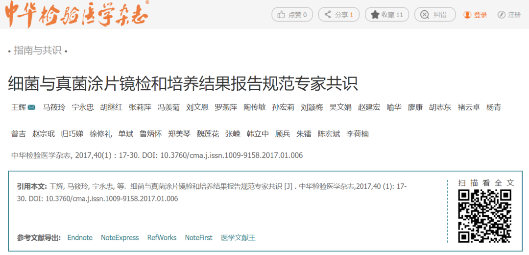 [3] 佚名. 細菌與真菌涂片鏡檢和培育結果報告規范專家共識[J]. 中華檢驗醫學雜志, 2017, 40(001):17-30.