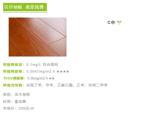 同時,它的甲醛釋放率在26款地板中也是*的,只要一星。還有苯、二甲苯這些污染物。