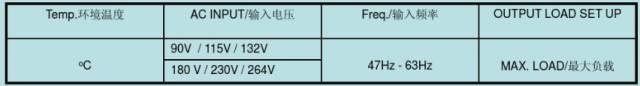(1). 輸入電壓條件為115Vac/60Hz和230Vac/50Hz與220Vac/50Hz/60Hz條件.