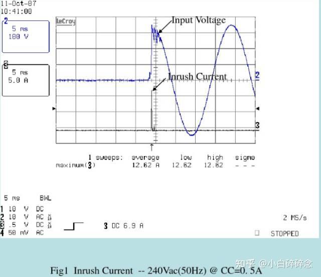(2). 輸入空載功率的規格是:1).0 (3). Po為銘牌標示的額外輸入電壓與額外輸入電流的乘積; (4) .實踐測試的平均效率值和輸入空載功率值需同時滿足規格要求才可契合規范要求. 六、計算方法舉例: (1).12V/1A的能效效率=(0.09*ln12+0.5 )*100%= (0.09*2.4849+0.5)*100%=72.36%; (2). 輸入功率≤ 0.5W; 一、目的: 測試S.M.P.S. 之輸入電流有效值INPUT CURRENT(規格依客戶要求設計). 二. 運用儀器設備: (1). AC SOURCE / 交流電源; (2). ELECTRONIC LOAD / 電子負載; (3). AC POWER METER / 功率表; 三. 測試條件: 四、測試方法: (1). 依規格設定測試條件: 輸入電壓, 頻率和輸入負載; (2). 從功率計中記載AC INPUT 電流值; 一、目的: 測試S.M.P.S. 輸入浪涌電流INRUSH CURRENT, 能否契合SPEC.要求. 二. 運用儀器設備: (1). AC SOURCE / 交流電源; (2). ELECTRONIC LOAD / 電子負載; (3). OSCILLOSCOPE / 示波器; 三. 測試條件: (1).依SPEC. 所要求(通常定義輸入電壓為100-240Vac/50-60Hz). 四、測試方法: (1). 依SPEC. 要求設定好輸入電壓, 頻率, 將待測品輸入負載設定在MAX. LOAD. (2). SCOPE CH2 接CURRENT PROBE, 用以量測INRUSH CURRENT, CH1設定在DC Mode, VOLTS/DIV 設定視狀況而定, CH1 作為SCOPE 之TRIGGER SOURCE, TRIGGER SLOPE 設定為"+", TIME/DIV 以5mS 為較佳, TRIGGER MODE 設定為"NORMAL". (3). CH1 則接到AC 輸入電壓. (4). 以上設定完成后POWER ON, 找出TRIGGER 舉措電流值(AT 90o 或270o POWER ON). 五、留意事項: (1). 冷開機(COLD-START): 需在低(常)溫環境下且BULK Cap.電荷須放盡, 以及熱敏電阻亦處于常溫下, 然后僅能*次開機, 若需第二次開機須再待電荷放盡才可再開機測試. (2). OSCILLOSCOPE 需運用隔離變壓器. 六、測試回路圖: 一、目的: 測試S.M.P.S. OUTPUT LOAD 一定而AC LINE 變化時, 其輸入電壓跟隨變化之動搖性(慣例則義≤1%). 二. 運用儀器設備: (1). AC SOURCE / 交流電源; (2). ELECTRONIC LOAD / 電子負載; (3). DIGITAL VOLTAGE METER (DVM) / 數字式電壓表; 三. 測試條件: 四、測試方法: (1). 依規格設定測試負載LOAD 條件. (2). 調整輸入電壓AC LINE 和頻率FREQUENCY 值. (3). 記載待測品輸入電壓值能否在規格內. (4). Line reg.=(輸入電壓的*值(Vmax.)-輸入電壓的*小值(Vmin.))/Vrate volt.*100%. 五. 留意事項: (1). 測試前先將待測品熱機, 待其輸入電壓動搖后再停止測試. (2). 電壓調整率值是輸入負載不變,輸入電壓變化時計算的值. 一、目的: 測試S.M.P.S. 在AC LINE 一定而OUTPUT LOAD 變化時, 其輸入電壓跟隨變化之動搖性(慣例則義≤±5%). 二. 運用儀器設備: (1). AC SOURCE / 交流電源; (2). ELECTRONIC LOAD / 電子負載; (3). DIGITAL VOLTAGE METER (DVM) / 數字式電壓表; 三. 測試條件: 四、測試方法: (1). 依規格設定測試輸入電壓AC LINE 和頻率FREQUENCY 值. (2). 調整輸入負載LOAD 值 (3). 記載待測品輸入電壓值能否在規格內. (4). Load reg.=(輸入電壓的*/小值(Vmax/min.)-輸入電壓的額外值(Vrate))/Vrate volt.*100%. 五. 留意事項: (1). 測試前先將待測品熱機, 待其輸入電壓動搖后再停止測試; (2). 負載調整率值是輸入電壓不變,輸入負載變化時計算的值. 一、目的: 驗證當輸入電壓偏低情形發作時, 待測品需能自我維護, 且不能有損壞現象; 二. 運用儀器設備: (1). AC SOURCE / 交流電源; (2). ELECTRONIC LOAD / 電子負載; (3). AC POWER METER / 功率表; 三. 測試條件: (1). 依SPEC. 要求: 設定輸入電壓為90Vac 或180Vac 和輸入負載Max. load; 四、測試方法: (1). 將待測品與輸入電源和電子負載銜接好, 且設定好輸入電壓和輸入負載; (2). 逐漸調降輸入電壓, 每次3 Vac/每分鐘. (3). 記載電壓值(包括輸入電壓和輸入電壓), 直到待測品自動當機為止. (4). 設定好輸入電壓為0Vac,逐漸調升輸入電壓, 每次3 Vac/每分鐘, 直到待測品輸入電壓到達正慣例格為止,記載電壓啟動時輸入電壓和輸入電壓值. 五、留意事項: (1). 待測品在正常操作狀況下不應有任何不穩舉措發作, 以及失效情形; (2). 產品當機和啟動時的輸入電壓需小于輸入電壓范圍下限值. 一、目的: 測試S.M.P.S. 直流輸入電壓之紋波RIPPLE 及噪聲NOISE(規格定義慣例為≤輸入電壓的1%); 二. 運用儀器設備: (1). AC SOURCE / 交流電源; (2). ELECTRONIC LOAD / 電子負載; (3) OSCILLOSCOPE / 示波器; (4) TEMP. CHAMBER / 溫控室; 三. 測試條件: 各種LINE 和LOAD 條件及溫度條件, 各種輸入電壓& 輸入負載(Min.-MAX. LOAD). 四、測試方法: (1). 按測試回路接好各測試,設備,以及待測品,測試電源在各種LINE 和LOAD,及溫度條件之RIPPLE &NOISE(下圖為一典型輸入RIPPLE & NOISE A: RIPPLE+NOISE; B: RIPPLE; C: NOISE 五、留意事項: (1). 測試前先將待測輸入并聯SPEC. 規則的濾波電容, (通常為10uF/47uF電解電容;或鉭電容及0.1uF陶瓷電容) 頻寬限制依SPEC. 而定(通常為20MHz). (2). 應防止示波器探頭自身攪擾所發生的雜訊. 一、目的: 測試S.M.P.S. POWER ON 時,各組輸入從10% ~ 90% POINT 之上升時間(慣例則義為≤20mS). 二. 運用儀器設備: (1). AC SOURCE / 交流電源; (2). ELECTRONIC LOAD / 電子負載; (3). OSCILLOSCOPE / 示波器 三. 測試條件: 四、測試方法: (1). 依規格設定AC VOLTAGE, FREQUENCY AND LOAD . (2). SCOPE 的CH1 接Vo, 并設為TRIGGER SOURCE, LEVEL 設定在Vo 的60% ~ 80% 較為妥當, TRIGGER SLOPE 設定在"+", TIME/DIV 和VOLTS/DIV 則視輸入電壓狀況而定. (3). 用CURSOR 中"TIME", 量測待測品各組輸入從電壓10% 至90% 之上升時間. 五. 留意事項: 測試前先將待測品處于冷機形狀,待BUCK Cap. 電荷放盡后停止測試. 一、目的: 測試S.M.P.S. POWER ON 時,各組輸入從90% ~ 10% POINT 之下降時間(慣例則義≥5mS); 二. 運用