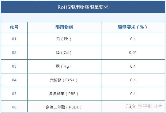 該規范的目的在于消弭電器電子產品中的鉛、汞、鎘、六價鉻、多溴聯苯和多溴二苯醚共六項物質,并對鎘的含量作出了重點規則,不能超越0.01%。