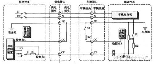 控制導引電路主要作用是用來確認充電接口和充電插座能否銜接,然后在充電進程中停止周期性檢測,以判別繼續充電還是中止充電等。